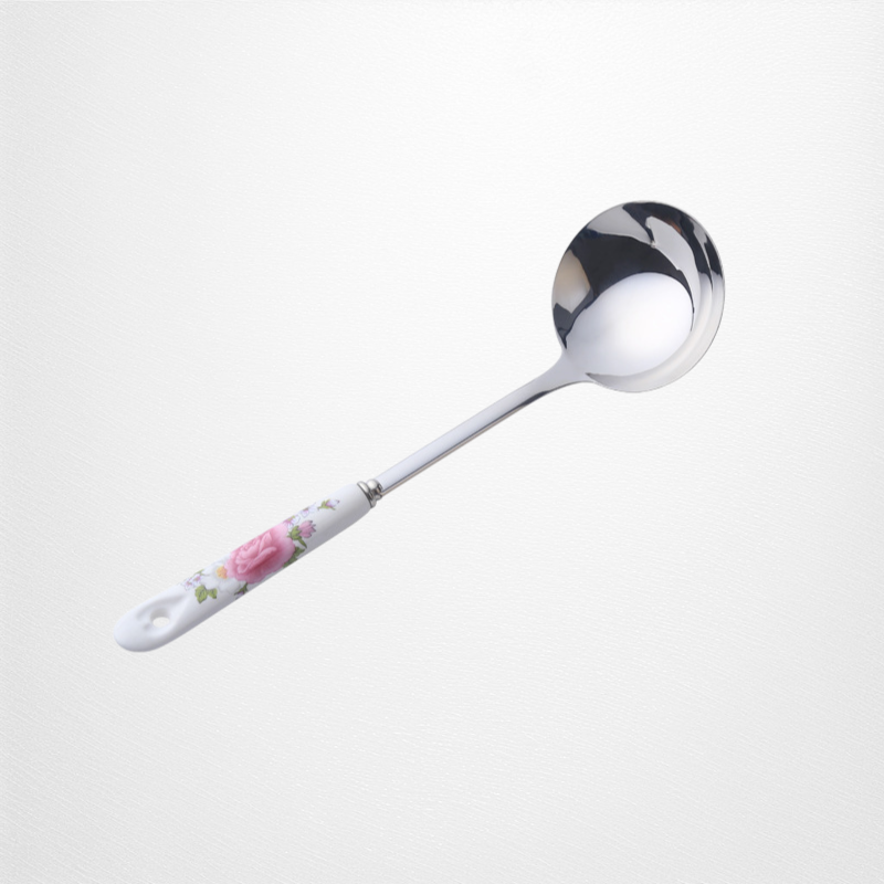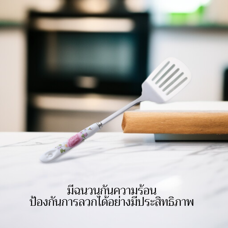 ชุดเครื่องครัวด้ามจับเซรามิกกันลื่นกันร้อน พร้อมกระบวยและตะหลิวสแตนเลส