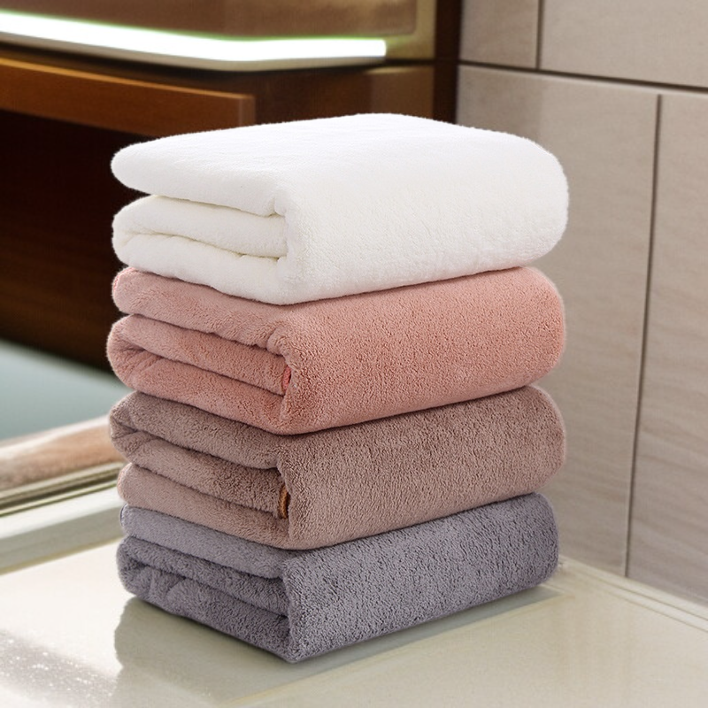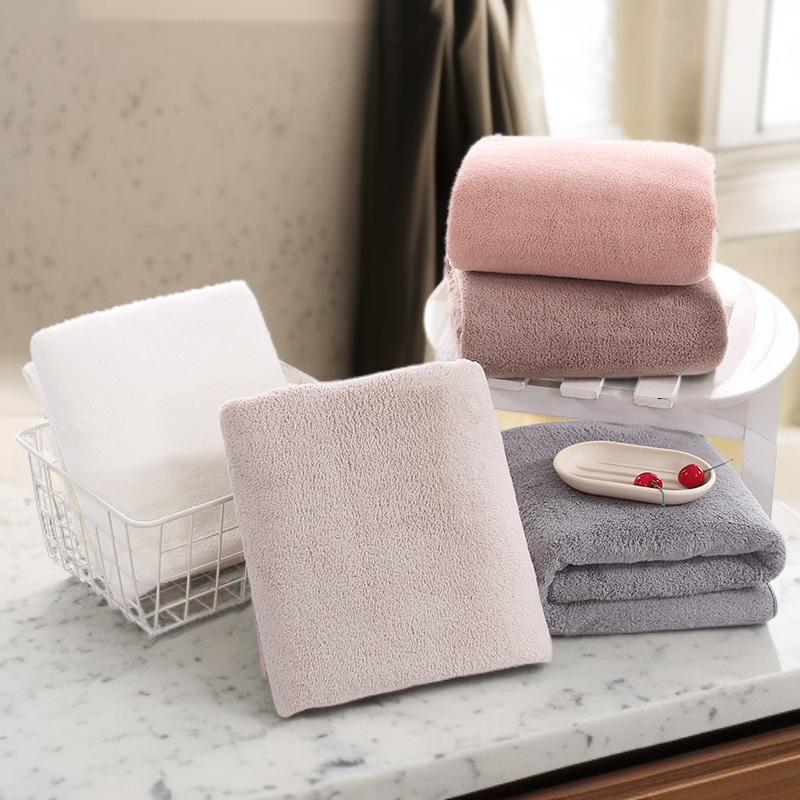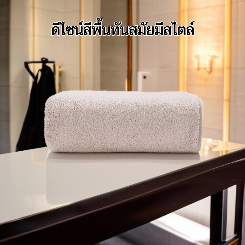 ผ้าขนหนูไมโครไฟเบอร์ดูดซับน้ำดี สีพื้น นุ่มสบาย
